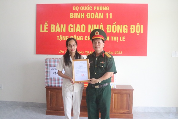Đây là món quà có ý nghĩa sâu sắc thể hiện sự quan tâm của Quân uỷ Trung ương, Bộ Quốc phòng, Bộ Tư lệnh Binh đoàn 11 và lãnh đạo, chỉ huy các cấp đối với cán bộ, chiến sĩ có hoàn cảnh khó khăn trong đơn vị. Công trình “Nhà đồng đội” thể hiện tinh thần tương thân, tương ái, cùng chung tay giúp đỡ đồng chí, đồng đội và lan tỏa sự yêu thương đùm bọc lẫn nhau nhằm giúp gia đình đồng chí Phạm Thị Lê sớm ổn định cuộc sống để an tâm công tác. Từ đó tiếp tục cống hiến và thực hiện tốt chức trách, nhiệm vụ được giao.