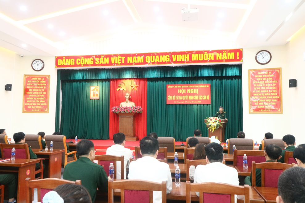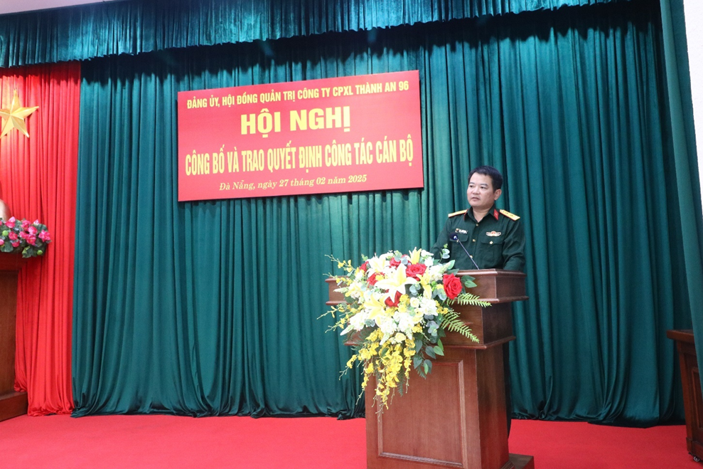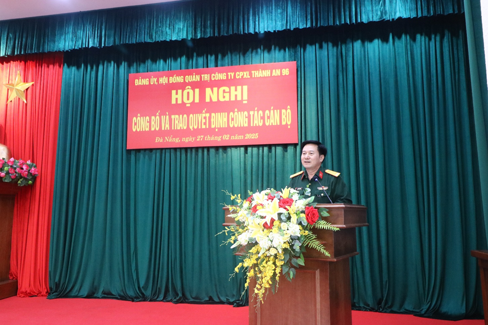 Giao nhiệm vụ cho cán bộ mới bổ nhiệm, đồng chí Đại tá Phan Xuân Bằng - Bí thư Đảng ủy, CTHĐQT Công ty ghi nhận, đánh giá cao biểu dương những thành tích đạt được và nhấn mạnh, để hoàn thành tốt nhiệm vụ, đồng chí Giám đốc cần nghiên cứu nắm vững chức trách nhiệm vụ, quyết đoán, sáng tạo linh hoạt. Phối hợp chặt chẽ giải quyết tốt mối quan hệ giữa lãnh đạo với chỉ huy điều hành, chấp hành nghiêm sự lãnh đạo của Đảng ủy, nghị quyết của HĐQT, điều hành sản xuất kinh doanh đúng pháp luật, xây dựng lực lượng đơn vị mạnh, các tổ chức ổn định phát huy tốt vai trò, chăm lo đời sống vật chất, tinh thần cho người lao động, cùng với tập thể Đảng ủy, chỉ huy duy trì Công ty ổn định phát triển, hoàn thành tốt nhiệm vụ.
