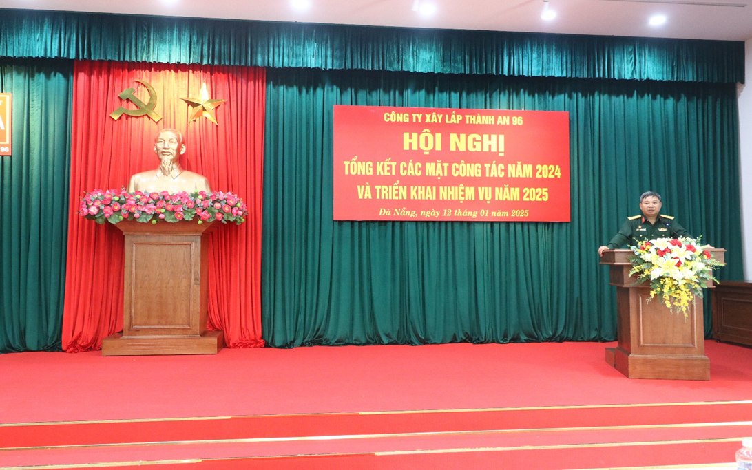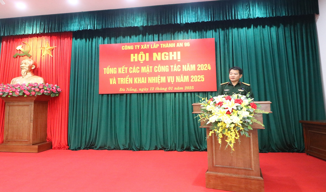 Dự Hội nghị, thay mặt Thủ trưởng BTL Binh đoàn 11, đồng chí Đại tá Vũ Văn Điềm - Bí thư Đảng ủy, Phó Tư lệnh Binh đoàn 11, phát biểu ghi nhận biểu dương và đánh giá cao những kết quả mà Đảng uỷ, chỉ huy và toàn thể cán bộ, CNV, người lao động trong Công ty CPXL Thành An 96 đạt được trong năm 2024. Đồng thời nêu định hướng và yêu cầu đơn vị tiếp tục quán triệt Nghị quyết các cấp về lãnh đạo thực hiện nhiệm vụ năm 2025; thực hiện tốt nhiệm vụ Quân sự - Quốc phòng, huấn luyện quân sự và xây dựng dự bị động viên, tiếp tục chăm lo đời sống vật chất, tinh thần và thu nhập cho người lao động; chú trọng đảm bảo công tác an toàn trong lao động; chăm lo công tác xây dựng tổ chức Đảng, đồng chí cũng tin tưởng rằng với kết quả đạt được trong năm 2024, sẽ là nguồn động lực quan trọng để Công ty CPXL Thành An 96 hoàn thành tốt nhiệm vụ sản xuất kinh doanh gắn với nhiệm vụ quốc phòng trong năm 2025.