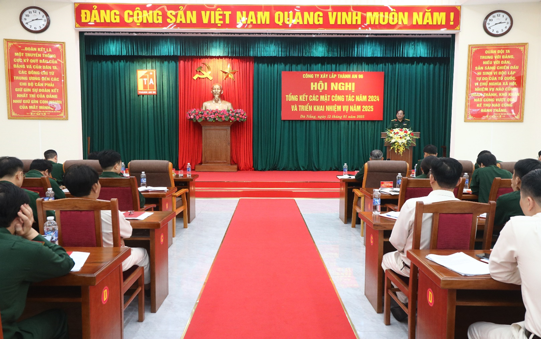 Ngày 12/01/2025, trong khí thế vui tươi của những ngày đầu năm mới, tại trụ sở làm việc Công ty (TP. Đà Nẵng). Công ty CPXL Thành An 96 long trọng tổ chức Hội nghị Đảng ủy và Hội nghị triển khai nhiệm vụ năm 2025. Đến dự, chỉ đạo hội nghị có Đ/c Đại tá Vũ Văn Điềm- Bí thư Đảng ủy, Phó Tư lệnh Binh đoàn 11 thay mặt Thường vụ Đảng ủy, Bộ Tư lệnh Binh đoàn và đại biểu đại diện các cơ quan chức năng Binh đoàn.