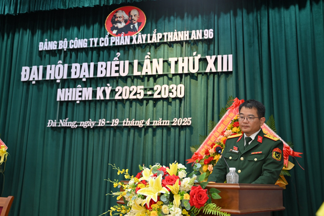 Trong hai ngày (18 và 19-4), tại TP Đà Nẵng, Đảng bộ Công ty Cổ phần Xây lắp Thành An 96, tổ chức Đại hội đại biểu lần thứ XIII, nhiệm kỳ 2025-2030. Đại tá Vũ Văn Điềm, Bí thư Đảng ủy, Phó tư lệnh Binh đoàn 11 dự và chỉ đạo. Báo cáo chính trị và các tham luận tại đại hội đánh giá: Trong nhiệm kỳ qua, Đảng bộ Công ty Cổ phần Xây lắp Thành An 96 đã tập trung lãnh đạo, chỉ đạo toàn đơn vị chủ động khắc phục mọi khó khăn, thực hiện thắng lợi các mục tiêu, nhiệm vụ mà Nghị quyết Đại hội lần thứ XII đề ra.