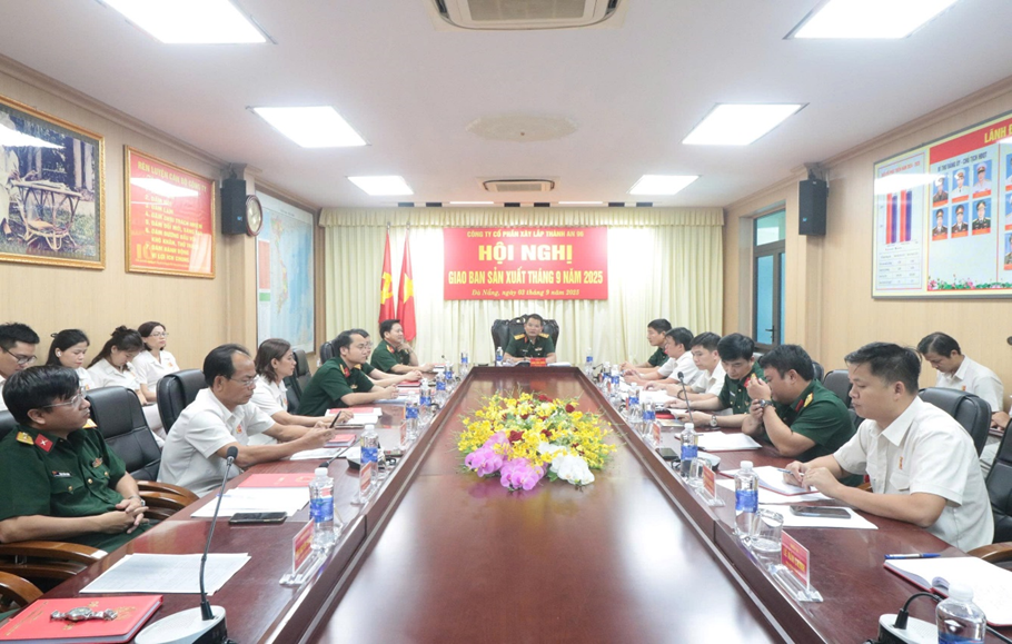 Chiều ngày (3/9) Công ty tổ chức Hội nghị GBSX tháng 9/2025. Tham dự có các đồng chí trong Đảng ủy, HĐQT, Ban Giám đốc Công ty, chỉ huy các cơ quan, đơn vị và cán bộ, CNV trên 5 điểm cầu, quân số 57 đồng chí.