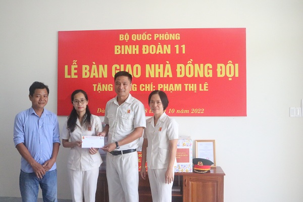 Đây là món quà có ý nghĩa sâu sắc thể hiện sự quan tâm của Quân uỷ Trung ương, Bộ Quốc phòng, Bộ Tư lệnh Binh đoàn 11 và lãnh đạo, chỉ huy các cấp đối với cán bộ, chiến sĩ có hoàn cảnh khó khăn trong đơn vị. Công trình “Nhà đồng đội” thể hiện tinh thần tương thân, tương ái, cùng chung tay giúp đỡ đồng chí, đồng đội và lan tỏa sự yêu thương đùm bọc lẫn nhau nhằm giúp gia đình đồng chí Phạm Thị Lê sớm ổn định cuộc sống để an tâm công tác. Từ đó tiếp tục cống hiến và thực hiện tốt chức trách, nhiệm vụ được giao.