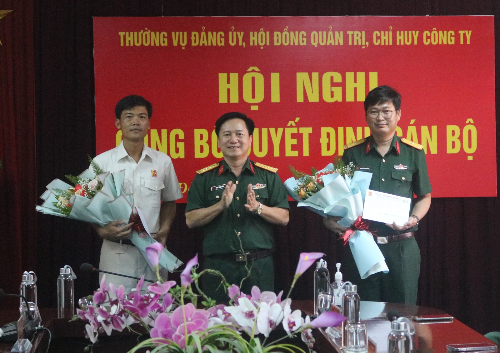 Phát biểu giao nhiệm vụ cho các đồng chí cán bộ được bổ nhiệm đợt này, Đại tá Hoàng Đức Trúc - Phó BTĐU, Giám đốc Công ty đã chúc mừng các đồng chí được bổ nhiệm và nhấn mạnh: Được bổ nhiệm chức vụ mới là vinh dự lớn mà Đảng uỷ, HĐQT, Chỉ huy Công ty tin tưởng, giao trọng trách cho các đồng chí; thể hiện sự quan tâm, đánh giá, ghi nhận thành tích của Đảng uỷ, HĐQT, Chỉ huy Công ty đối với các đồng chí trong quá trình công tác; đồng thời cũng là vinh dự lớn của mỗi đồng chí, là niềm vui cá nhân, gia đình của đồng chí.