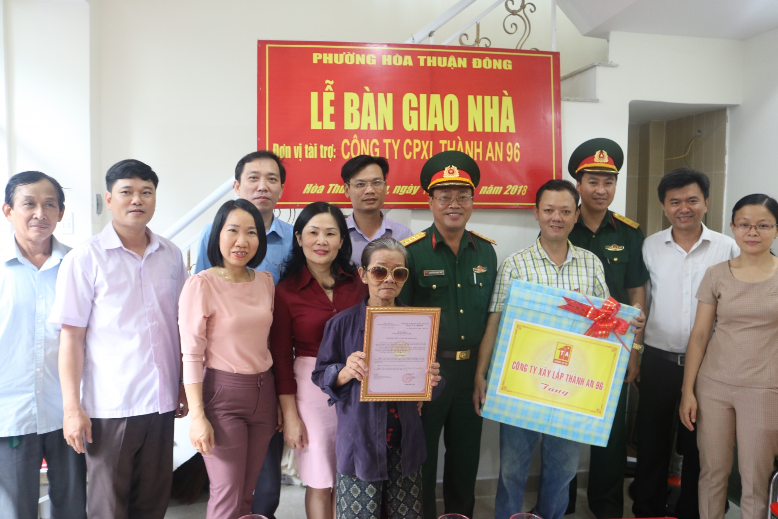 Nhân dịp kỷ niệm 71 năm ngày Thương binh, Liệt sỹ, Sáng ngày 17/7/2018 tại TP. Đà Nẵng, Công ty CPXL Thành An 96 phối hợp cùng với Đảng ủy, HĐND, UBND, UBMTTQ phường Hòa Thuận Động, quận Hải Châu, TP Đà Nẵng, tổ chức Lễ bàn giao Nhà tình nghĩa cho gia đình bà Nguyễn Thị Hằng- sinh năm 1955, trú tại tổ 38, phường Hòa Thuận Đông, quận Hải Châu, TP.Đà Nẵng là con Liệt sỹ có hoàn cảnh đặc biệt khó khăn về nhà ở. Dự lễ bàn giao có các đồng chí đại biểu đại diện UBMTTQ Việt Nam quận Hải Châu, đại biểu đại diện phòng Lao động thương binh và xã hội quận Hải Châu, đại biểu đâị diện Đảng ủy, HĐND, UBND, UBMTTQ Việt Nam phường Hòa Thuận Đông và tổ dân phố 38. Đại diện Lãnh đạo, chỉ huy Công ty CPXL Thành An 96 có đồng chí Đại tá Nguyễn Ngọc Huệ - Bí thư Đảng ủy - Chủ tịch HĐQT Công ty và các đồng chí đại diện cơ quan Công ty. Đây là ngôi nhà tình nghĩa của cán bộ, CNV, người lao động trong Công ty tri ân, tặng cho gia đình chính sách giảm bớt khó khăn, ổn định cuộc sống.