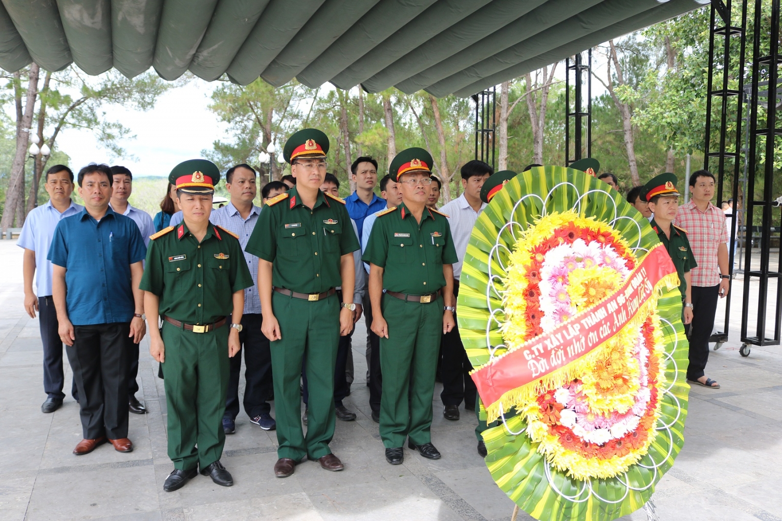 Tại nghĩa trang liệt sỹ Quốc gia Trường Sơn, đoàn đã đặt vòng hoa, dâng hương tri ân các anh hùng Liệt sĩ, những người đã hy sinh xương máu cho độc lập dân tộc và thống nhất đất nước và tự do cho nhân dân, ghi sổ lưu niệm tri ân các anh hùng, liệt sỹ đồng chí Đại tá Nguyễn Ngọc Huệ viết: Cán bộ, CNV và người lao động Công ty CPXL Thành An 96 nguyện đem hết sức mình góp phần xây dựng đất nước Việt Nam ngày càng văn minh, giàu đẹp, Đời đời nhớ ơn các anh hùng liệt sỹ, thường xuyên làm tốt công tác đền ơn đáp nghĩa trên các địa bàn đơn vị đóng quân và thi công công trình. Giúp đỡ các gia đình chính sách có hoàn cảnh khó khăn, góp phần cùng với Đảng, Nhà nước, Quân đội, địa phương thực hiện tốt chính sách đền ơn đáp nghĩa.