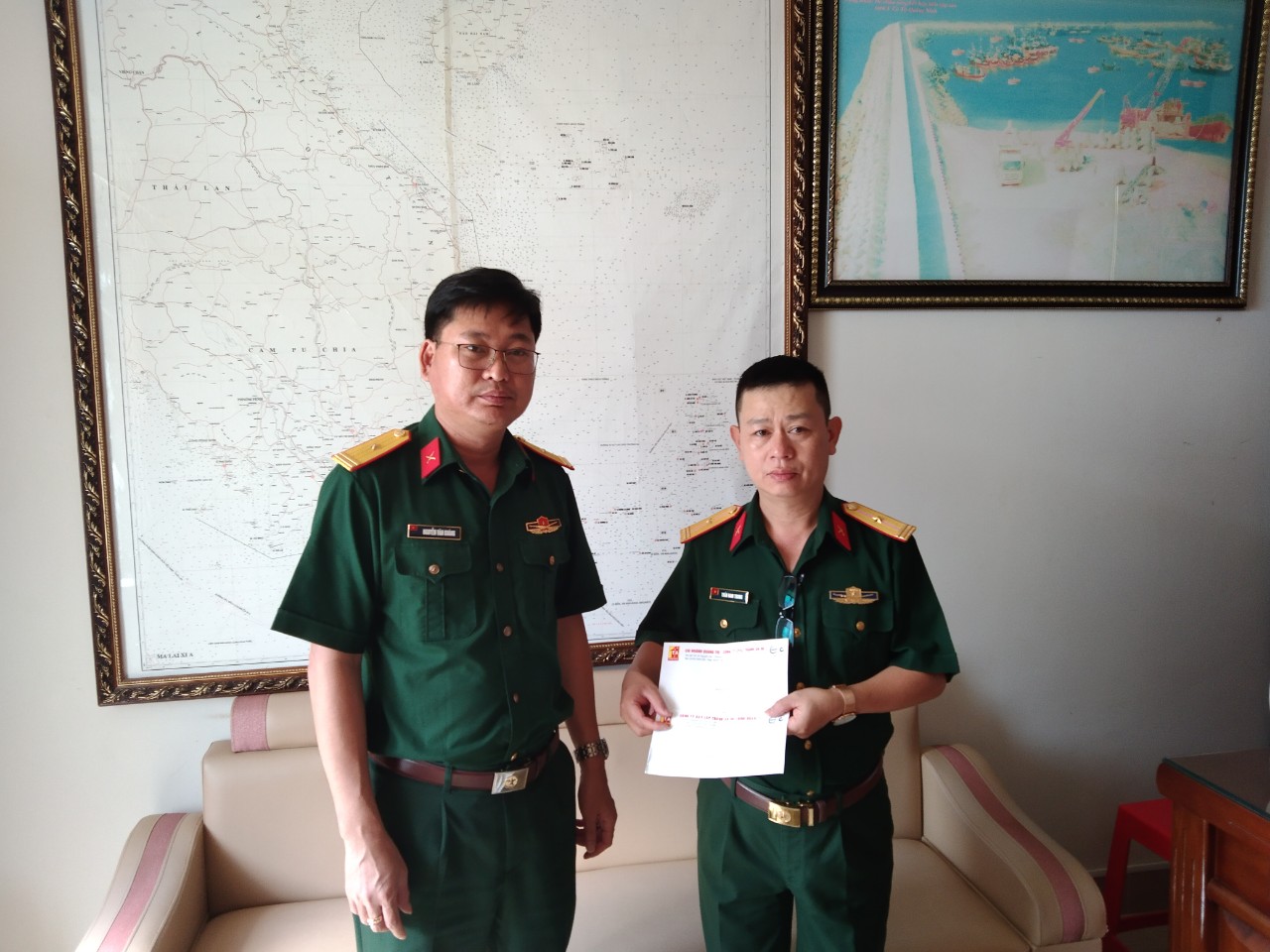 Đồng chí Thiếu tá Nguyễn Văn Kháng - Giám đốc Chi nhánh Quảng Trị trao quà của Binh đoàn 11 và Công ty cho