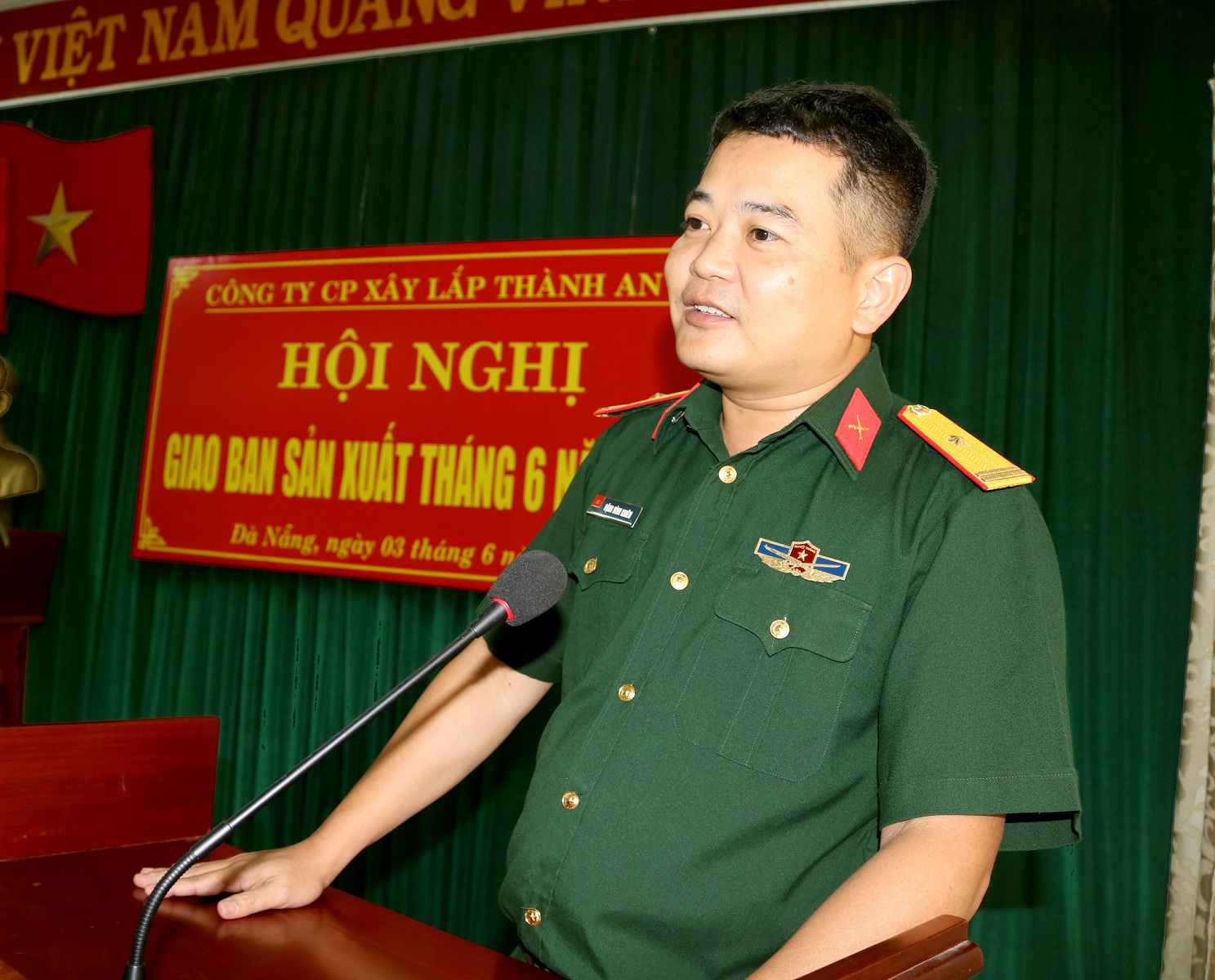Kế tiếp trao Quyết định thăng quân hàm sĩ quan, Công ty tổ chức Hội nghị Giao ban sản xuất tháng 6 năm 2020. Đồng chí Đại tá Hoàng Đức Trúc - Giám đốc Công ty chủ trì Hội nghị.