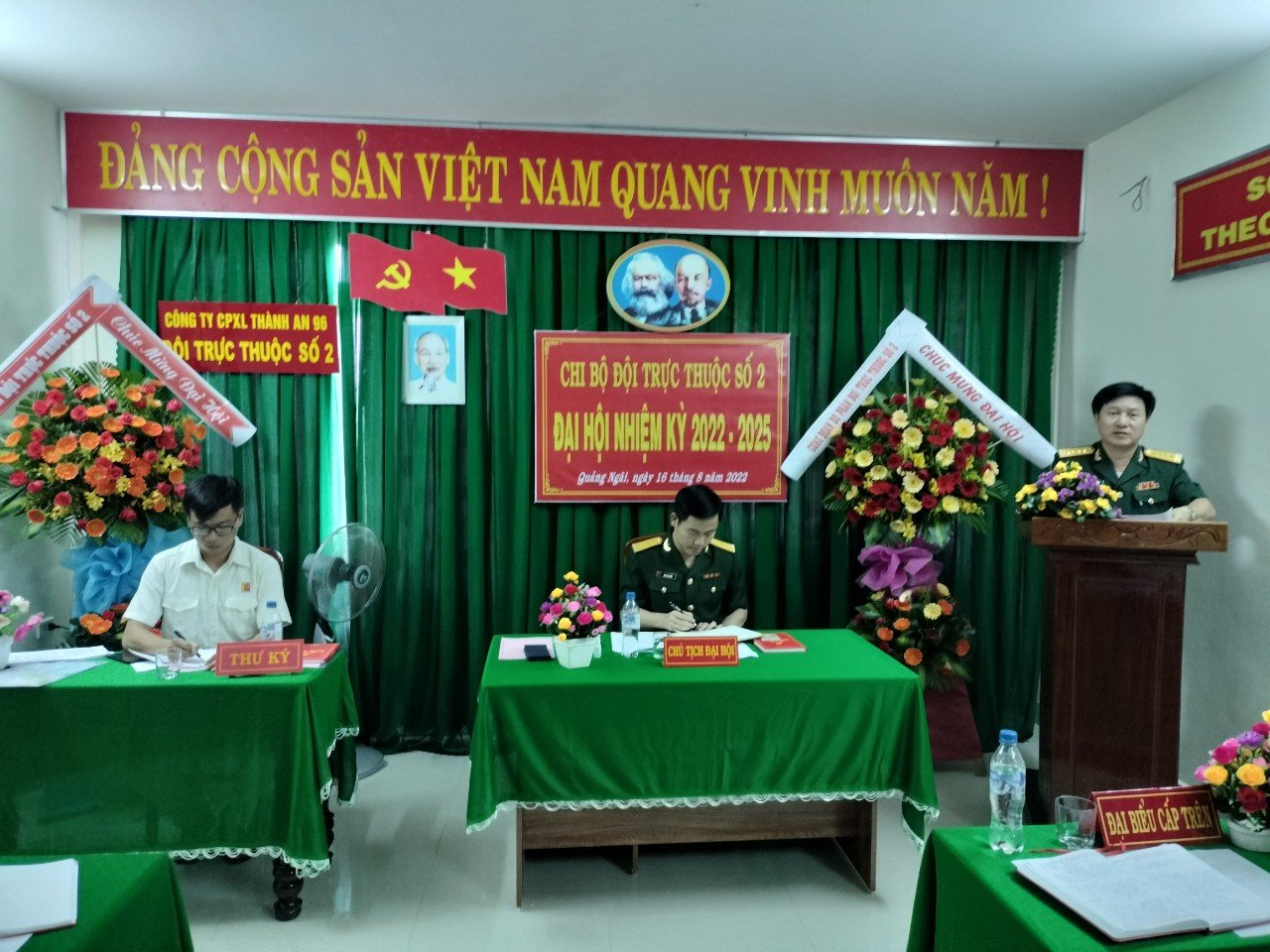 Thực hiện Hướng dẫn số 110-CT/ĐU ngày 04/4/2022 của Phòng Chính trị, Binh đoàn 11; Kế hoạch của Đảng uỷ Công ty CPXL Thành An 96 V/v tổ chức đại hội các Chi bộ trong Đảng bộ Công ty, nhiệm kỳ 2022 – 2025.