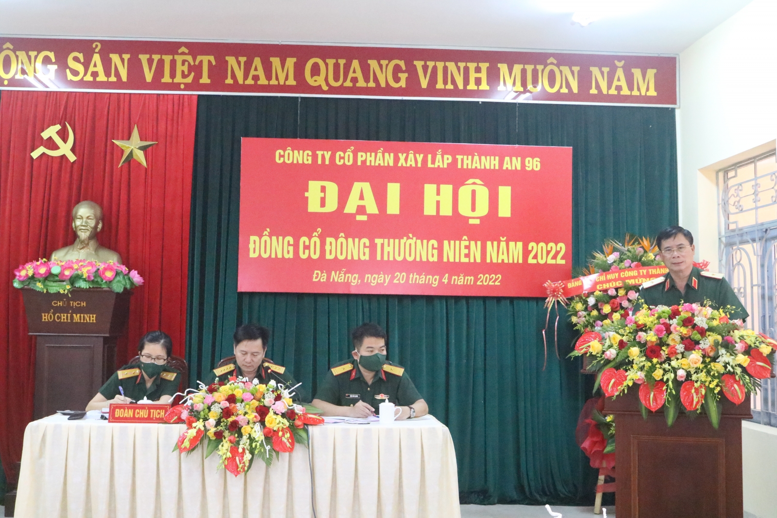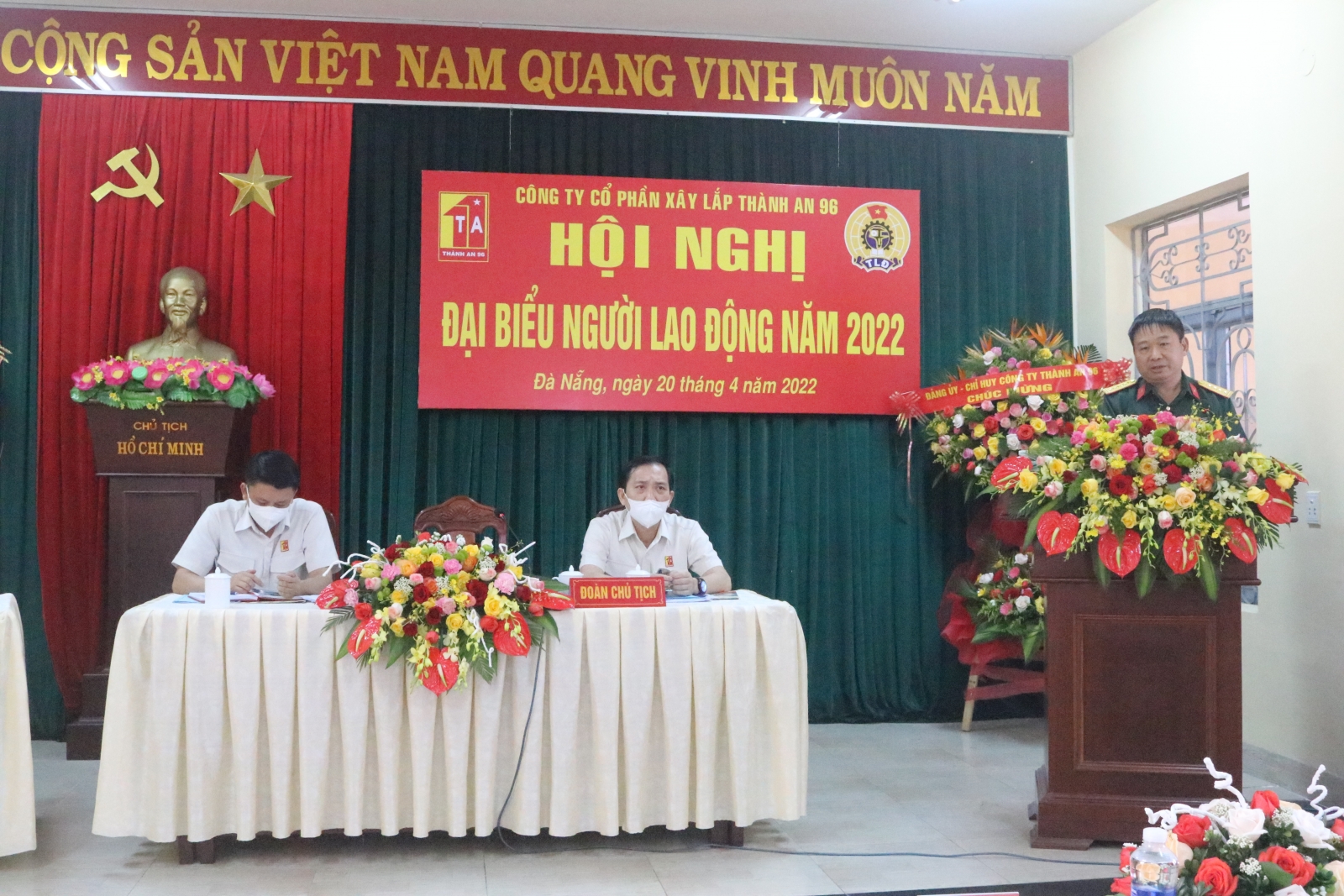 Được sự chấp thuận của Hội đồng thành viên Tổng Công ty Thành An. Theo chương trình, kế hoạch. Sáng ngày 20/4/2022, tại thành phố Đà Nẵng, Công ty Cổ phần xây lắp Thành An 96, tổ chức Đại hội đồng cổ đông thường niên năm 2022. Đến dự và chỉ đạo Đại hội có đồng chí Thiếu tướng Nguyễn Quốc Dũng- Chủ tịch Hội đồng Thành viên Tổng Công ty Thành An- Tư lệnh Binh đoàn 11, thay mặt cho Thường vụ Đảng ủy, BTL Binh đoàn, đại diện chủ sở hữu phần vốn nhà nước tại Công ty CPXL Thành An 96 và có các đồng chí đại biểu Đại diện cơ quan Tổng Công ty. Tham dự Đại hội còn có các đ/c trong HĐQT, Ban Giám đốc; Đảng ủy, Ban Kiểm soát Công ty, đại diện Công ty tư vấn chứng khoán Ngân hàng công thương Việt Nam và các cổ đông đại diện cho 903 cổ đông trong Công ty có mặt đầy đủ theo đăng ký.