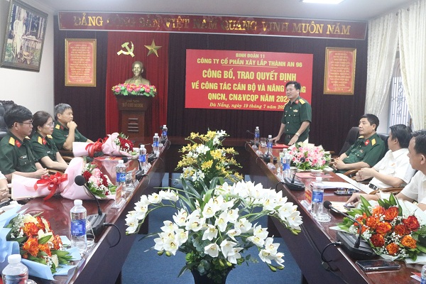 Phát biểu giao nhiệm vụ cho các đồng chí cán bộ được tuyển dụng cán bộ, bổ nhiệm, thăng quân hàm, nâng lương đợt này, Đại tá Hoàng Đức Trúc - Giám đốc Công ty đã chúc mừng các đồng chí được nhận quyết định và nhấn mạnh: Được bổ nhiệm chức vụ mới là vinh dự lớn mà Đảng uỷ, HĐQT, Chỉ huy Công ty tin tưởng, giao trọng trách cho các đồng chí; thể hiện sự quan tâm, đánh giá, ghi nhận thành tích của Đảng uỷ, HĐQT, Chỉ huy Công ty đối với các đồng chí trong quá trình công tác; đồng thời cũng là vinh dự lớn của từng cá nhân và gia đình các đồng chí. Đồng chí Giám đốc Công ty yêu cầu các đồng chí cần xác định rõ trách nhiệm; nhanh chóng tiếp cận công việc, xây dựng kế hoạch nắm bắt tình hình đơn vị; thực hiện tốt chức trách, nhiệm vụ trên cương vị mới. Tiếp tục nỗ lực phấn đấu, rèn luyện, học tập; thực sự tiêu biểu về trí tuệ, phẩm chất, đạo đức, lối sống; nâng cao hơn nữa năng lực toàn diện công tác, cùng tập thể Đảng uỷ, Chỉ huy các cấp lãnh đạo, chỉ đạo triển khai thực hiện có hiệu quả hoạt động SXKD và hoàn thành xuất sắc nhiệm vụ chính trị, góp phần vào xây dựng đơn vị vững mạnh toàn diện.