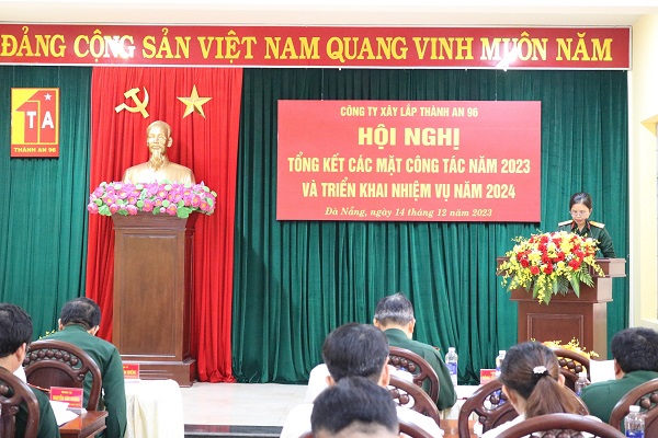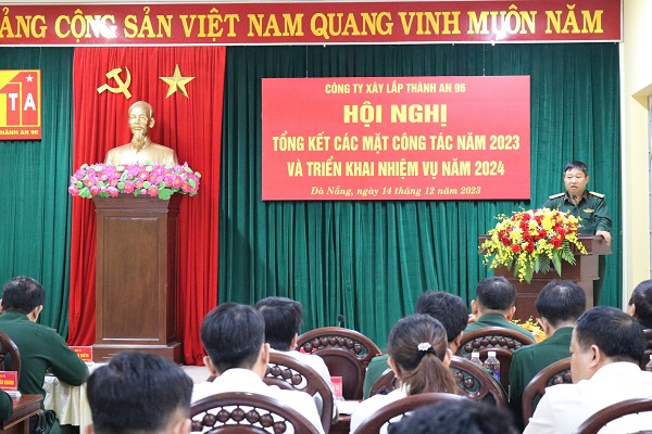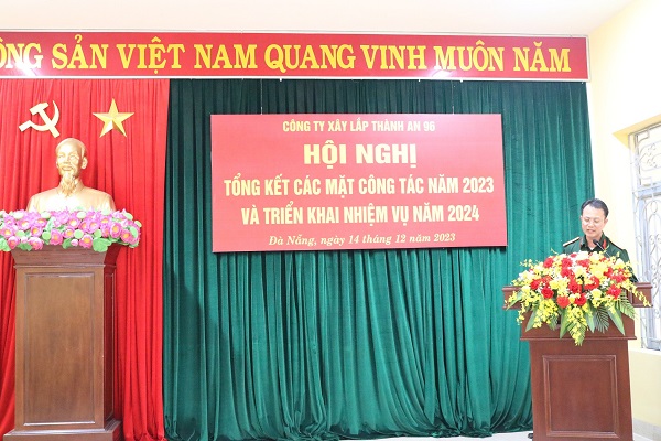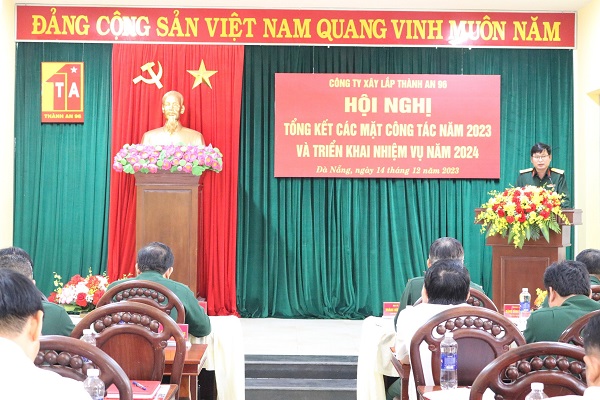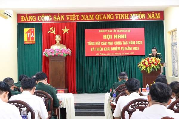 Dự Hội nghị, thay mặt Thủ trưởng BTL Binh đoàn 11, Đại tá Vũ Văn Điềm - Bí thư Đảng ủy, Phó Tư lệnh Binh đoàn. Đồng chí phát biểu ghi nhận và đánh giá cao những kết quả mà Đảng uỷ, chỉ huy và toàn thể cán bộ, CNV, người lao động trong Công ty CPXL Thành An 96 đạt được trong năm 2023. Đồng thời nêu định hướng và yêu cầu đơn vị tiếp tục quán triệt Nghị quyết các cấp về lãnh đạo thực hiện nhiệm vụ năm 2024; Thực hiện tốt nhiệm vụ Quân sự - Quốc phòng, công tác Dự bị động viên; Đảm bảo điều kiện làm việc và nâng cao hơn nữa đời sống vật chất, tinh thần và thu nhập của người lao động; Xây dựng tổ chức Đảng trong sạch, vững mạnh; Chú trọng đảm bảo công tác an toàn trong lao động, không lơ là chủ quan. Đồng chí cũng tin tưởng rằng với kết quả đạt được trong năm 2023, sẽ là nguồn động lực quan trọng để Công ty xây lắp Thành An 96 tiếp tục hoàn thành tốt nhiệm vụ sản xuất kinh doanh gắn với nhiệm vụ quốc phòng trong năm 2024.