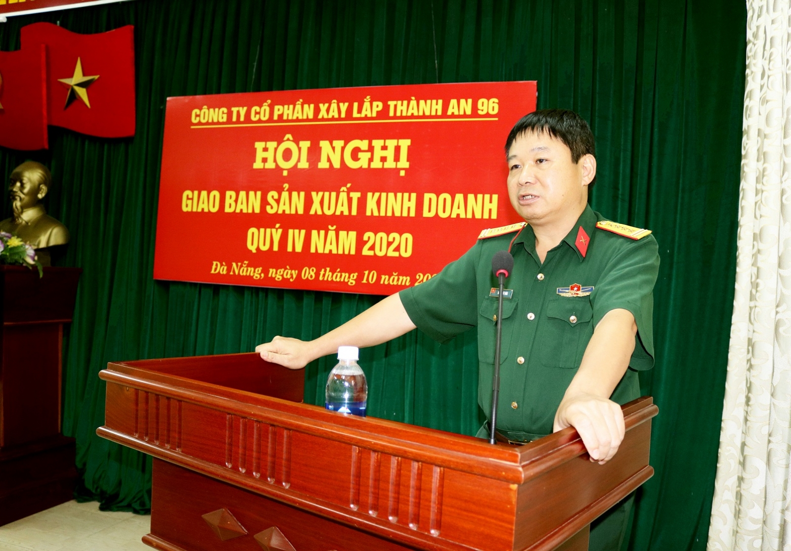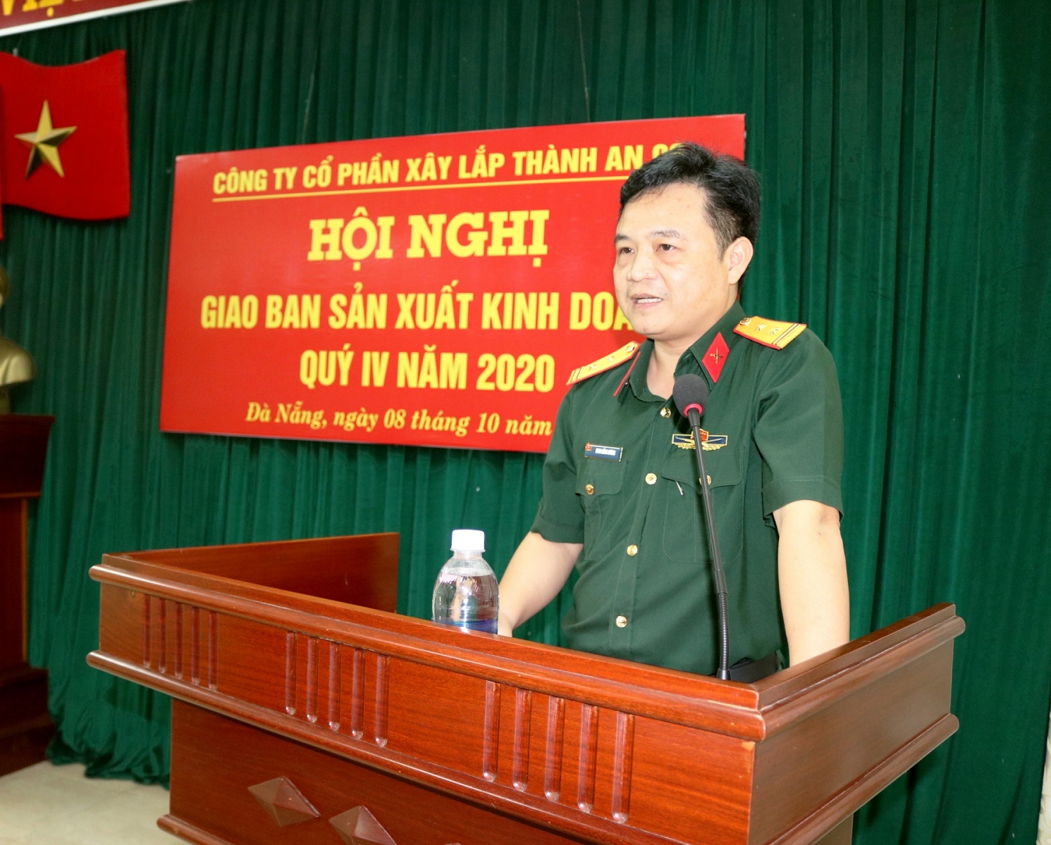 Phát biểu kết luận Hội nghị, Đ/c Đại tá Hoàng Đức Trúc, Giám đốc Công ty đã khái quát tình hình chung của toàn Binh đoàn và tình hình của Công ty. Biểu dương các đơn vị đã chủ động khắc phục mọi khó khăn để hoàn thành kế hoạch SXKD trong tháng 9 và 9 tháng đầu năm. Đồng thời đề ra một số nhiệm vụ, giải pháp thiết thực để tiếp tục đẩy mạnh hoạt động SXKD như tăng cường hơn nữa công tác quản lý, chỉ đạo, điều hành sản xuất; làm hồ sơ thanh toán, ứng vốn chủ đầu tư để tổ chức thi công theo đúng tiến độ đề ra. Đẩy mạnh công tác tiếp thị tìm kiếm việc làm để hoàn thành kế hoạch sản xuất năm 2020 và có công việc gối đầu cho năm 2021. Trong tháng 10 và Quý IV năm 2020 là thời gian có cường độ công việc cực lớn do một mặt phải tiến hành song song tổng kết các mặt công tác, thực hiện đánh giá, bình xét phân loại các tổ chức và tổng kết phong trào thi đua quyết thắng năm 2020. Mặt khác phải đẩy nhanh tiến độ thi công các công trình, nhất là những công trình trọng điểm, công trình có đủ yếu tố, công trình hoàn thành bàn giao, làm tốt công tác chuẩn bị để triển khai các công trình mới trúng thầu. Với khối lượng công việc còn phải thực hiện lớn, đòi hỏi các đơn vị trong Công ty cần nỗ lực phấn đấu nhiều hơn nữa để thực hiện tốt nhiệm vụ SXKD tháng 10 và Quý IV năm 2020. Góp phần hoàn thành thắng lợi nhiệm vụ chính trị năm 2020, xây dựng tổ chức Đảng HTXSNV, đơn vị VMTD, các tổ chức quần chúng VMXS.