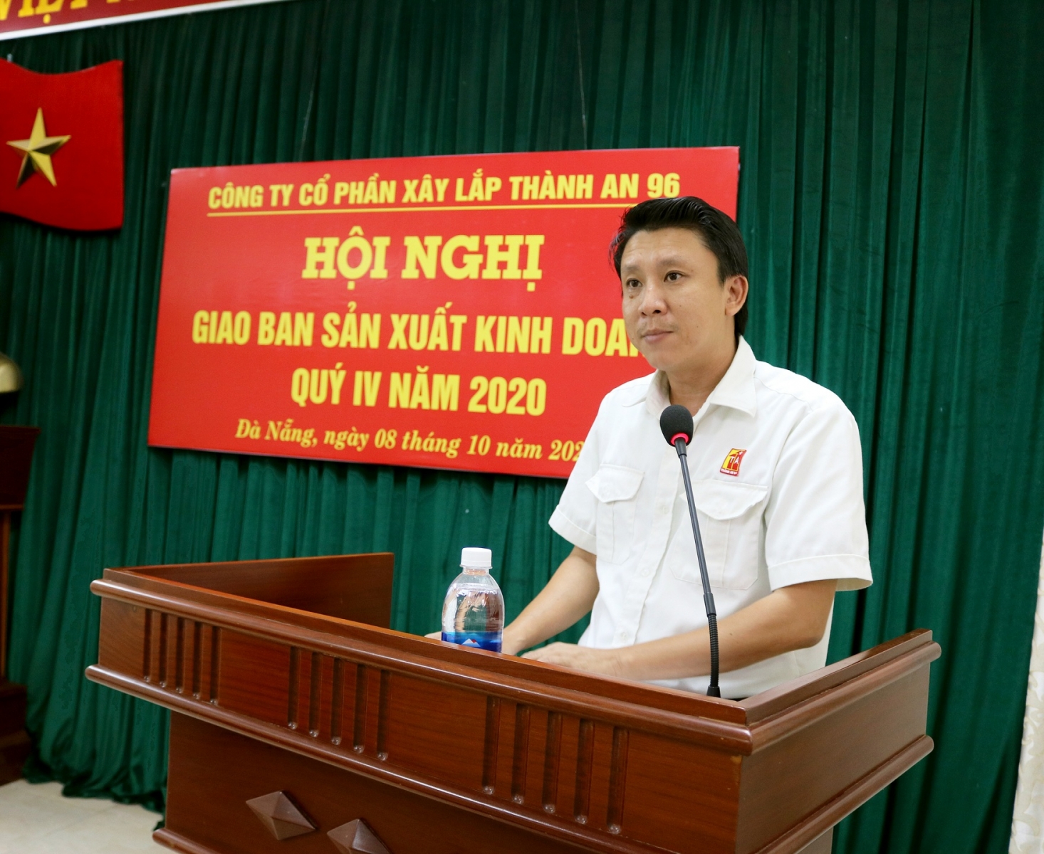 Sáng ngày 08/10/2020, tại trụ sở Công ty CPXL Thành An 96, Đảng ủy Công ty đã tổ chức Hội nghị Đảng ủy ra Nghị quyết lãnh đạo thực hiện nhiệm vụ tháng 10 năm 2020. Đảng ủy đã kiểm điểm đánh giá kết quả lãnh đạo thực hiện nhiệm vụ SXKD, xây dựng đơn vị và xây dựng Đảng bộ trong tháng 9 và 9 tháng đầu năm 2020, đồng thời đề ra phương hướng lãnh đạo nhiệm vụ tháng 10, Quý IV năm 2020.