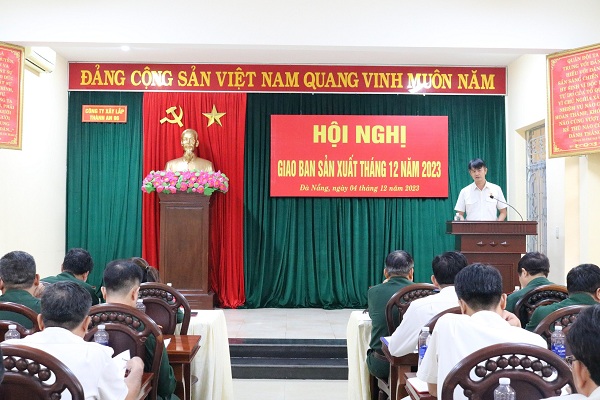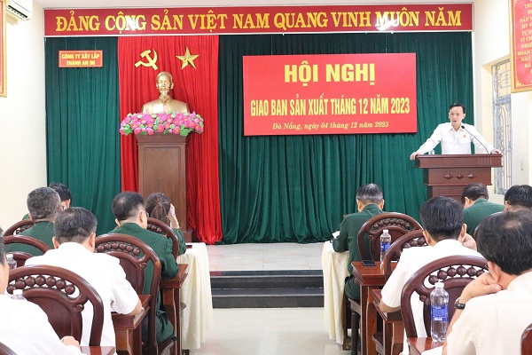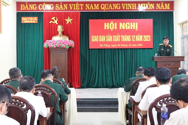 Theo chương trình kế hoạch, chiều ngày 04/12/2023, tại trụ sở, Công ty CPXL Thành An 96 tổ chức hội nghị giao ban sản xuất tháng 12, thành phần hội nghị có các đồng chí lãnh đạo, Chỉ huy Công ty; Chỉ huy các cơ quan, đơn vị và trưởng phụ trách các bộ phận chuyên môn.