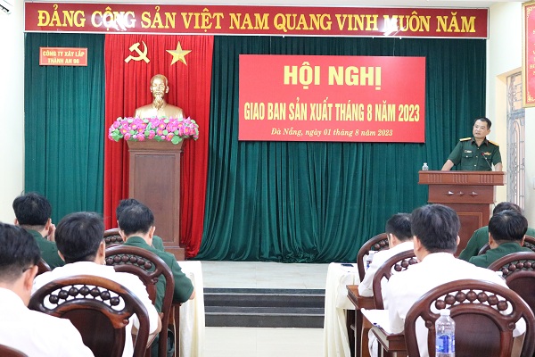 Đồng chí Trung tá Đặng Đình Khiêm- Phó Giám đốc Công ty đã kết luận các nội dung liên quan đến từng cơ quan, đơn vị, giải quyết tháo gỡ những tồn tại, vướng mắc. Triển khai và định hướng các nhiệm vụ, phương hướng cụ thể trong các mặt công tác ở từng cơ quan, đơn vị, trong thời gian tới. Trong đó tập trung lãnh đạo, chỉ đạo rà soát lại tiến độ thi công các công trình, công tác tổ chức thi công, công tác kế hoạch, công tác nhân sự, công tác tài chính, công tác thu hồi công nợ. Đồng thời, yêu cầu các đơn vị chủ động khắc phục ngay những hạn chế, tồn tại, đẩy nhanh tiến độ thi công các công trình, chú trọng công tác đảm bảo an toàn trong thi công và giữ vững ổn định tình hình đơn vị.