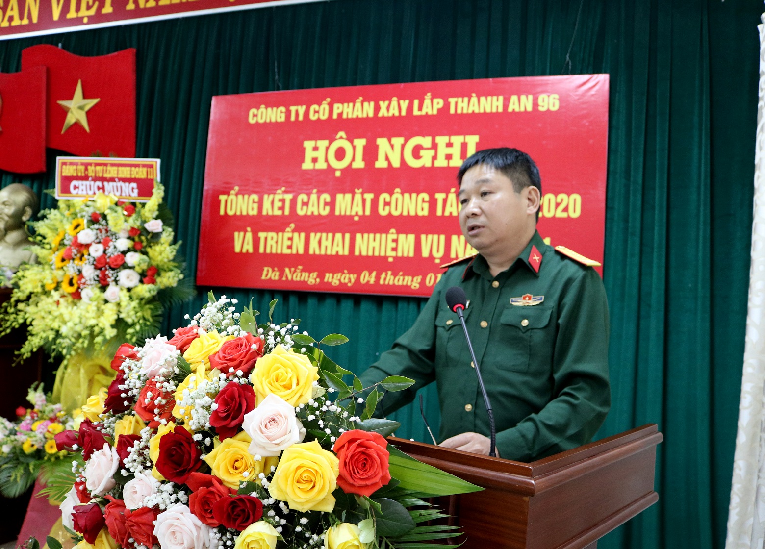 Phát biểu chỉ đạo Hội nghị, đồng chí Thiếu tướng Nguyễn Quốc Dũng - Phó Bí thư Đảng uỷ, Tư lệnh Binh đoàn 11 đã trao thưởng cho các tập thể, cá nhân có thành tích xuất sắc trong thực hiện nhiệm vụ năm 2020. Đồng thời ghi nhận, biểu dương những kết quả mà Công ty cổ phần xây lắp Thành An 96 đạt được trong năm qua, đồng chí đề nghị Đảng ủy, Hội đồng quản trị, Ban Giám đốc Công ty tiếp tục lãnh đạo, chỉ đạo, điều hành và có những chủ trương, giải pháp cụ thể để tháo gỡ những khó khăn trong hoạt động SXKD của Công ty. Đặc biệt, năm 2021 cần tăng năng lực cạnh tranh, tiếp thị tìm kiếm việc làm, coi trọng nâng cao chất lượng sản phẩm; tăng cường công tác quản lý, bảo đảm thu nhập cho người lao động ngày càng tốt hơn.