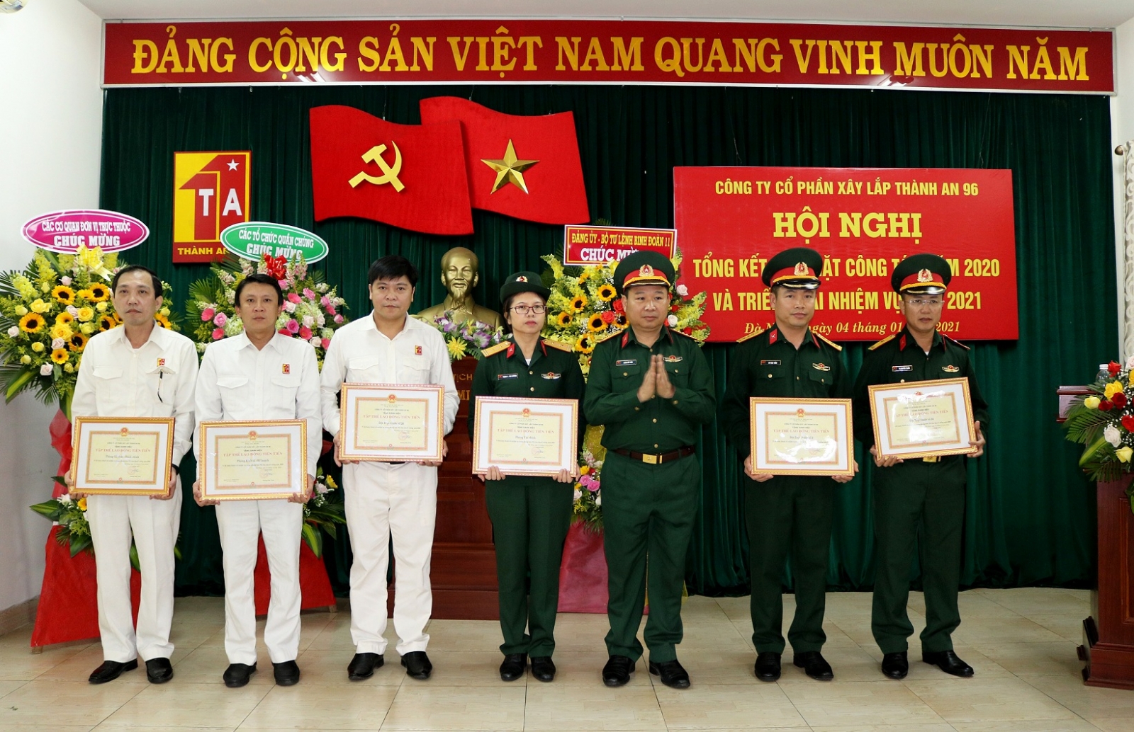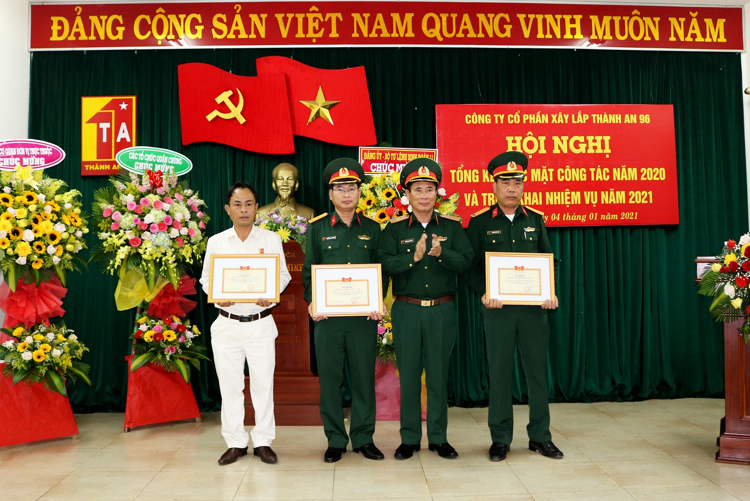 Sáng ngày 04/01/2021, tại trụ sở Công ty CPXL Thành An 96, Đảng ủy Công ty đã tổ chức Hội nghị Đảng ủy ra Nghị quyết lãnh đạo thực hiện nhiệm vụ năm 2021. Đến dự và chỉ đạo hội nghị có Thiếu tướng Nguyễn Quốc Dũng - Phó Bí thư Đảng uỷ, Tư lệnh Binh đoàn 11; Đồng chí Trung tá Vũ Văn Liểu - Uỷ viên Thường vụ, Chủ nhiệm chính trị Binh đoàn 11. Tại Hội nghị, Đảng ủy Công ty đã kiểm điểm đánh giá kết quả lãnh đạo thực hiện nhiệm vụ SXKD, xây dựng đơn vị và xây dựng Đảng bộ trong năm 2020, đồng thời đề ra phương hướng lãnh đạo nhiệm vụ năm 2021.