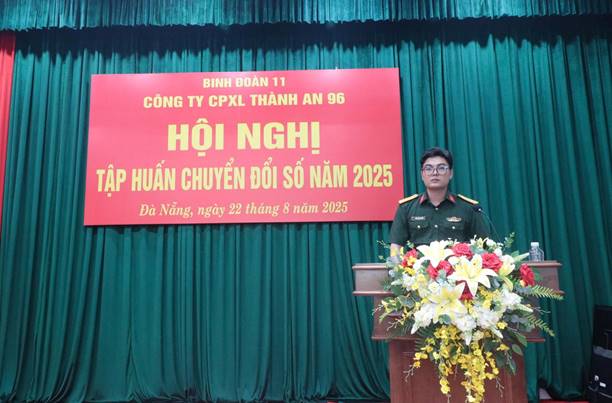 Đồng chí Trung tá Đặng Đình Khiêm - Giám đốc Công ty, chủ trì và phát biểu chỉ đạo tại buổi tập huấn, nhấn mạnh: “Chuyển đổi số không còn là lựa chọn, mà là con đường tất yếu để doanh nghiệp phát triển bền vững, thích ứng linh hoạt với sự thay đổi của thị trường. Việc nắm bắt và ứng dụng công nghệ số hiệu quả sẽ là chìa khóa nâng cao năng suất, chất lượng dịch vụ và sức cạnh tranh của công ty trong thời gian tới.”