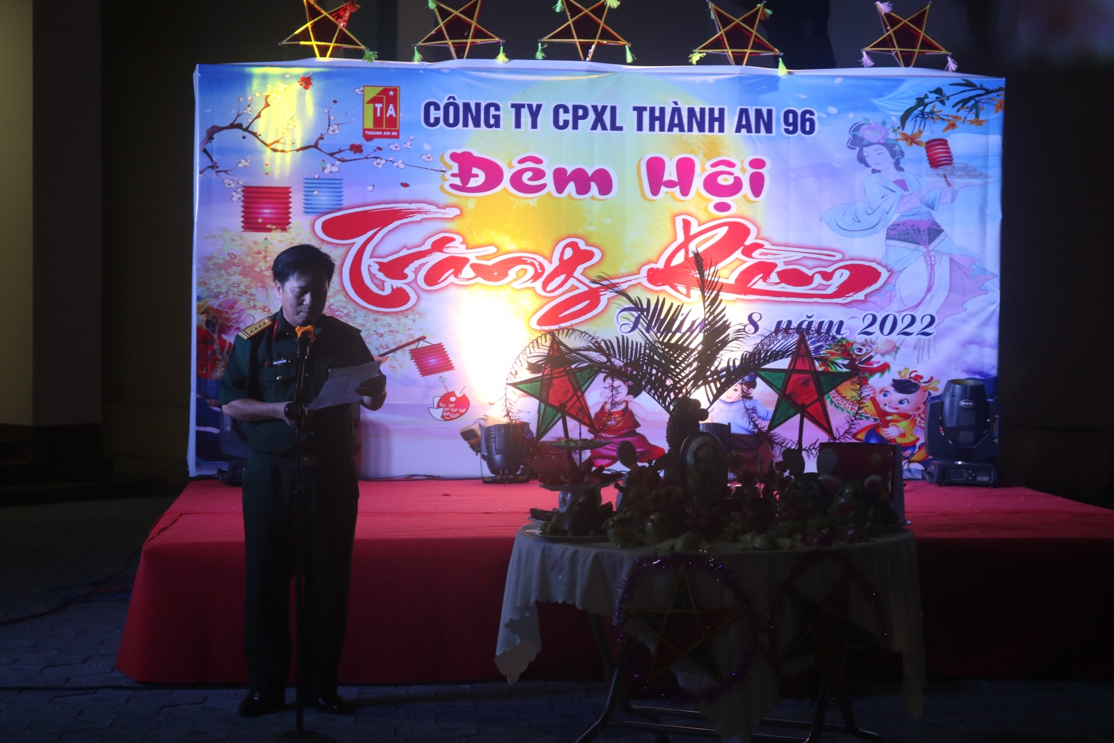 Phát biểu nhân dịp Tết Trung thu tại điểm Trụ sở Công ty, đồng chí Đại tá Phan Xuân Bằng - Bí thư Đảng ủy, CTHĐQT Công ty, thay mặt lãnh đạo, Chỉ huy Công ty gửi lời chúc mừng tới các cháu nhân dịp Tết Trung thu, biểu dương thành tích học tập và rèn luyện của các cháu. Đồng chí cũng mong muốn trong thời gian tới các bậc phụ huynh quan tâm chăm sóc để các cháu mạnh khỏe, chăm ngoan, học giỏi đạt được những thành tích cao hơn nữa trong năm học 2022 - 2023.