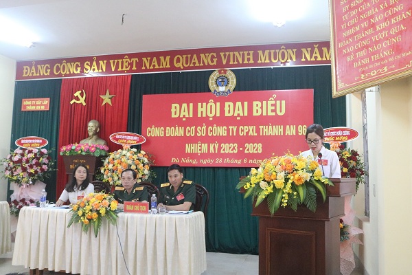 Chiều ngày 28 tháng 6, tại thành phố Đà Nẵng, Công ty CPXL Thành An 96 tổ chức Đại hội đại biểu Công đoàn Cơ sở Công ty nhiệm kỳ 2023 - 2028. Dự và chỉ đạo đại hội có đồng chí Đại tá Vũ Văn Điềm - Bí thư Đảng ủy, Phó Tư lệnh Binh đoàn 11; đại biểu Cơ quan Binh đoàn 11; các đồng lãnh đạo, Chỉ huy Công t; Có 60 đại biểu đại diện cho hơn 500 đoàn viên của các công đoàn trực thuộc trong Công ty.
