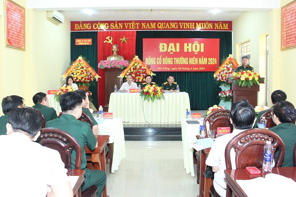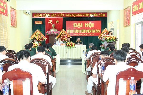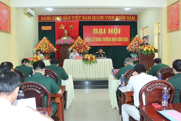 Đồng chí Đại tá Phan Xuân Bằng, Chủ tịch HĐQT Công ty đại diện cho Đoàn chủ tịch phát biểu khai mạc Đại hội và thông qua các báo cáo của HĐQT về công tác quản trị, kết quả hoạt động năm 2023 và phương hướng năm 2024; Báo cáo của HĐQT về kết quả đầu tư, thanh xử lý tài sản năm 2023 và kế hoạch năm 2024; Thông qua tờ trình báo cáo tài chính kiểm toán năm 2023; Kế hoạch kinh doanh, lợi nhuận và mức chia cổ tức năm 2024; Thông qua tờ trình phương án phân phối lợi nhuận năm 2023; Thông qua tờ trình lựa chọn đơn vị kiểm toán năm 2024. Thông qua tờ trình quyết toán mức lương, thù lao của HĐQT, BKS năm 2023; Kế hoạch mức lương, thù lao của HĐQT, BKS năm 2024 và Thông qua tờ trình bổ sung ngành, nghề kinh doanh. Các cổ đông phát biểu trên tinh thần nhất trí đồng thuận cao.