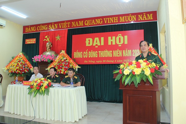 Đại tá Phan Xuân Bằng - Chủ tịch HĐQT Công ty phát biểu tại Đại hội