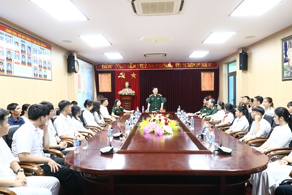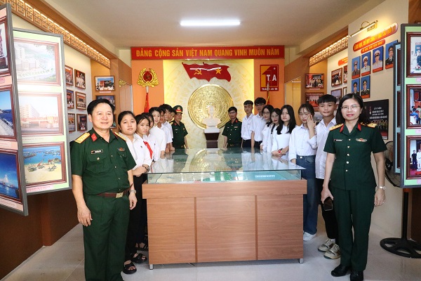 Lãnh đạo, chỉ huy Công ty cùng các cháu học sinh tham quan phòng truyền thống Công ty