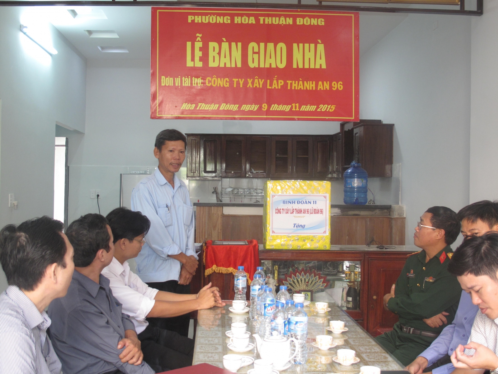 Tham dự lễ bàn giao nhà tình nghĩa có đại diện lãnh đạo, chỉ huy Công ty xây lắp Thành An 96 và đại diện cấp ủy, chính quyền, các Ban ngành đoàn thể phường Hòa Thuận Đông, quận Hải Châu, thành phố Đà Nẵng.