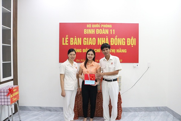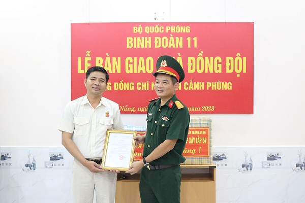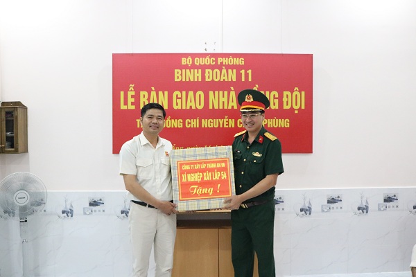Tại buổi bàn giao nhà, lãnh đạo, chỉ huy Công ty, Xí nghiệp 54 và đại diện lãnh đạo chính quyền địa phương cũng có những phần quà trao tặng cho gia đình hai đồng chí.