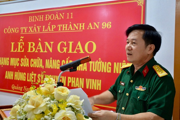 Sáng ngày 18/9/2024, tại tỉnh Quảng Nam, Công ty xây lắp Thành An 96 - Binh đoàn 11 tổ chức Lễ bàn giao các hạng mục, sửa chữa, nâng cấp nhà tưởng niệm Anh hùng Liệt sĩ Nguyễn Phan Vinh tại đường Trần Thủ Độ, phường Điện Nam Trung, thị xã Điện Bàn, tỉnh Quảng Nam.