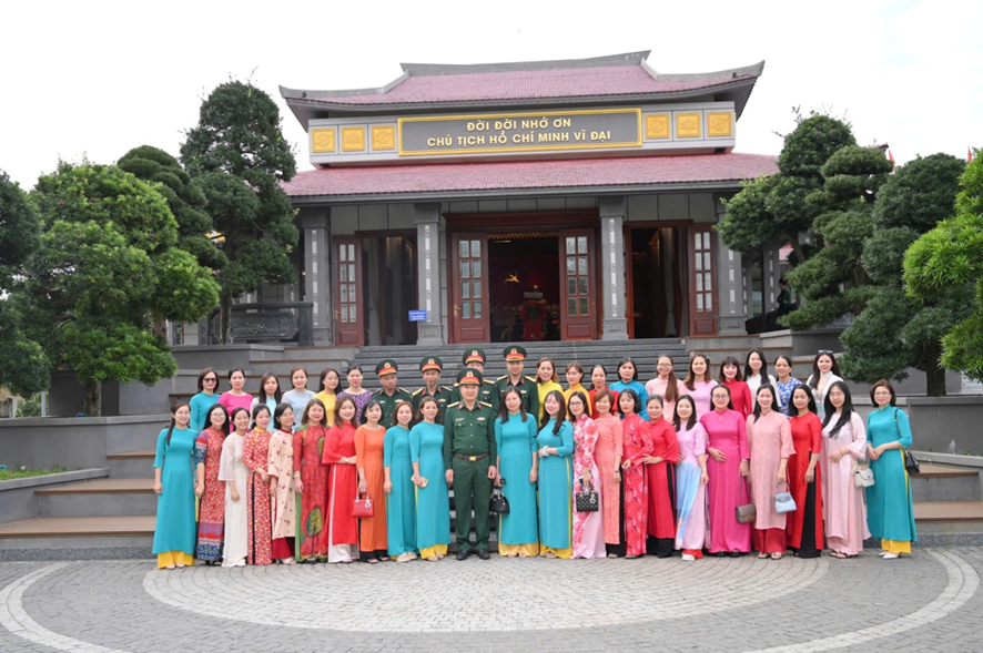 Chỉ huy Công, các đại biểu và chị em phụ nữ chụp ảnh lưu niệm