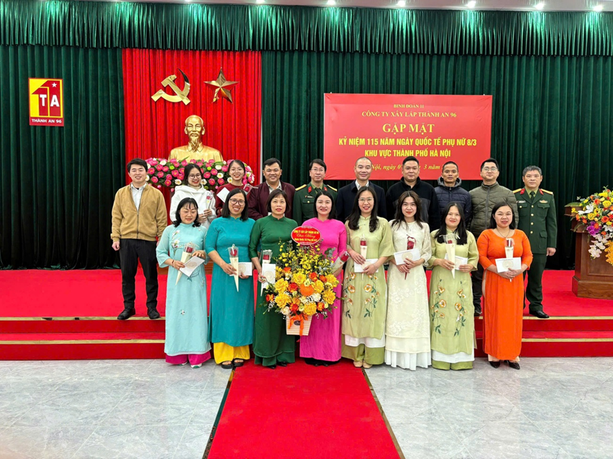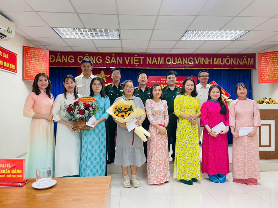 Cùng với niềm vui chung của Phụ nữ cả nước, chào mừng kỷ niệm 115 năm Ngày Quốc tế Phụ nữ 8/3 và 1985 năm khởi nghĩa Hai Bà Trưng. Được sự quan tâm của Ban Thường vụ Đảng ủy, HĐQT, Ban Giám đốc Công ty. BCH Hội Phụ nữ cơ sở chủ trì xây dựng kế hoạch tổ chức các hoạt động chào mừng tại 5 khu vực (Đà Nẵng, Hà Nội, TP.Hồ Chí Minh, Quảng Trị, Nha Trang) các hoạt động diễn ra từ ngày 6/3 đến 8/3 thu hút đông đảo chị em tham gia (90 cán bộ, hội viên) với nhiều nội dung chương trình thiết thực ý nghĩa như: Ngày Hội truyền thống trang phục áo dài, tổ chức tuyên truyền, mít tinh kỷ niệm, gặp mặt giao lưu tặng hoa chúc mừng; các hoạt động tri ân thăm viếng khu di tích, tưởng niệm, thăm tặng quà Mẹ Việt Nam Anh hùng, tặng quà cho trẻ em làng SOS Đà Nẵng...