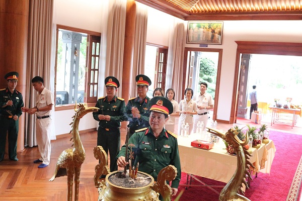 Đại tá Phan Xuân Bằng - Bí thư Đảng uỷ, CT.HĐQT Công ty dâng hương tưởng niệm Chủ tịch Hồ Chí Minh tại Bảo tàng Quân khu 5