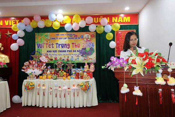 Tại khu vực thành phố Đà Nẵng tổ chức tại trụ sở Xí nghiệp xây lắp 54. Thay mặt lãnh đạo, chỉ huy Công ty, dự và phát biểu động viên có đồng chí Thượng tá CN Trịnh Thị Thu Hương - Phó Giám đốc Công ty và các đồng chí trong ban Giám đốc; cán bộ chủ chốt các phòng, ban chức năng Công ty, lãnh đạo, chỉ huy các đơn vị tại khu vực Đà Nẵng; BCH các tổ chức quần chúng của các cơ quan, đơn vị, phụ huynh và 147 cháu thiếu niên, nhi đồng có mặt đông đủ. Phát biểu tại Đêm vui Tết Trung thu, đồng chí Thượng tá CN Trịnh Thị Thu Hương - Phó Giám đốc Công ty, thay mặt lãnh đạo, chỉ huy Công ty gửi lời chúc mừng tới các cháu nhân dịp vui Tết Trung thu, biểu dương thành tích học tập và rèn luyện của các cháu năm 2023-2024. Đồng chí cũng mong muốn trong thời gian tới các bậc phụ huynh quan tâm chăm sóc để các cháu mạnh khỏe, chăm ngoan, học giỏi đạt được những thành tích cao hơn nữa trong năm học 2024 - 2025.