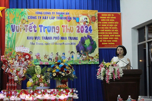 Đ/c Thượng tá CN Trịnh Thị Thu Hương - Phó Giám đốc Công ty phát biểu vui tết Trung thu năm 2024