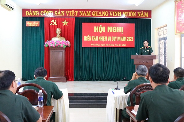Phát biểu kết luận Hội nghị, đồng chí Đại tá Hoàng Đức Trúc - Giám đốc Công ty đã biểu dương các đơn vị đã trong khắc phục mọi khó khăn để hoàn thành kế hoạch SXKD trong quý III và 9 tháng đầu năm. Trong tháng 10 và Quý IV năm 2023 là thời gian có cường độ công việc cao do một mặt phải tiến hành phải đẩy nhanh tiến độ thi công các công trình, nhất là những công trình trọng điểm, công trình có đủ yếu tố, công trình hoàn thành bàn giao, làm tốt công tác chuẩn bị để triển khai các công trình mới trúng thầu. Song song là tổng kết các mặt công tác, thực hiện đánh giá, bình xét phân loại các tổ chức và tổng kết phong trào thi đua quyết thắng năm 2023 và chuẩn bị xây dựng kế hoạch công tác năm 2024