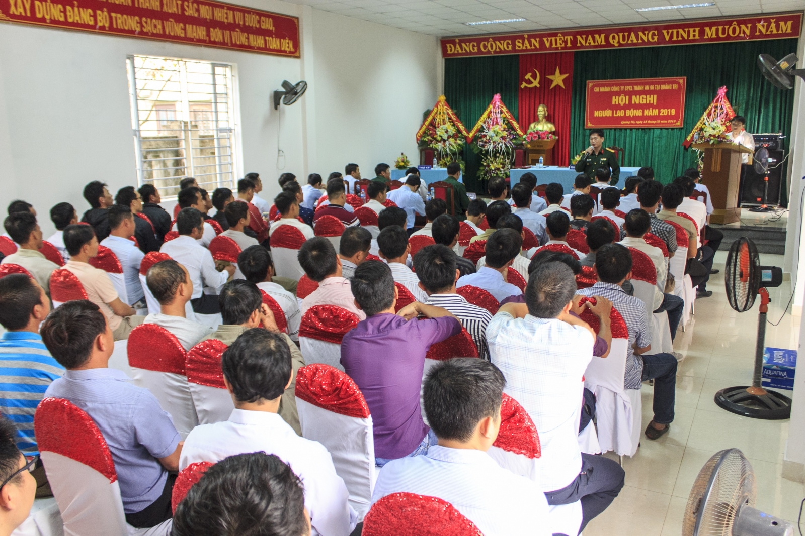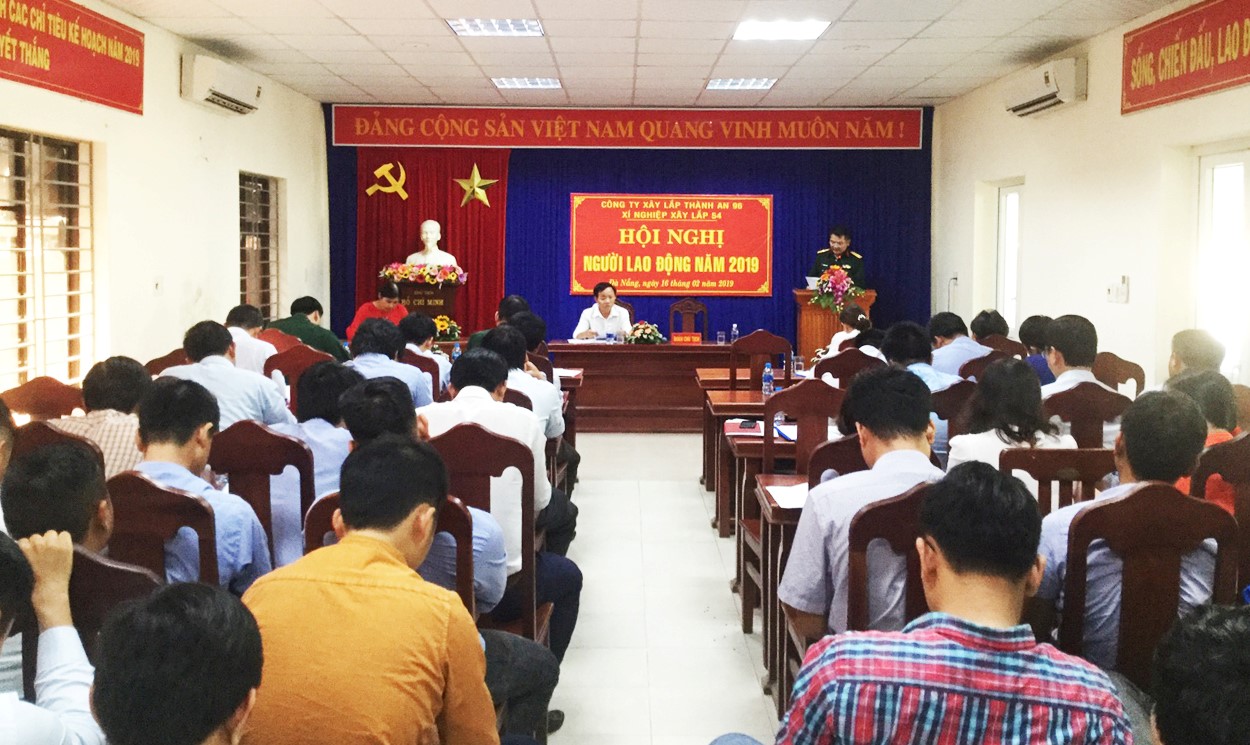 Thực hiện Quy chế dân chủ ở cơ sở và hướng dẫn số: 19/BĐ-BĐ ngày 11/01/2019 của Tổng công ty Thành An về việc tổ chức Hội nghị người lao động năm 2019. Sau khi có hướng dẫn của Tổng công ty, Đảng uỷ, Chỉ huy Công ty đã chỉ đạo BCH Công đoàn cơ sở Công ty phối hợp cùng với các cơ quan chức năng của Công ty và Chỉ huy các đơn vị tổ chức hội nghị người lao động trong Công ty theo đúng nội dung, chương trình, từ ngày 25/01 đến ngày 26/02/2019 đã có 14/14 đầu mối cơ quan, đơn vị trực thuộc trong Công ty đã tiến hành Hội nghị xong. Mặc dù các đơn vị đều hoạt động phân tán, việc đi lại gặp nhiều khó khăn và phải tập trung triển khai nhiều việc, nhưng việc tổ chức Hội nghị người lao động ở các cơ quan, đơn vị năm 2019 đã được lãnh đạo, chỉ huy và BCH Công đoàn các đơn vị chấp hành nghiêm túc, tổ chức Hội nghị đúng thời gian, đảm bảo thủ tục nguyên tắc và đạt kết quả tốt. Trước và trong quá trình tổ chức Hội nghị các đơn vị đã tiến hành xây dựng kế hoạch, tổ chức tuyên truyền, phát động phong trào thi đua rộng khắp trên các công trường, được Cán bộ, CNV và người lao động trong đơn vị hưởng ứng và tham gia tích cực, đã góp phần thực hiện thắng lợi nhiệm vụ chính trị và xây dựng đơn vị VMTD.