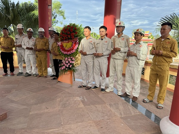 Đoàn Cán bộ, nhân viên công trình 609 dâng hương tại nghĩa trang Liệt sĩ xã Duy Phú, Duy Xuyên, Quảng Nam