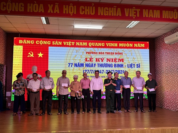 Cụ thể: Tại thành phố Đà Nẵng, chiều ngày 23/7/2024 Chỉ huy Công ty đã trao 100 suất quà (trị giá mỗi suất quà 500.000đ) cho các gia đình chính sách và người có công với cách mạng tại phường Hòa Thuận Đông, quận Hải Châu, thành phố Đà Nẵng.