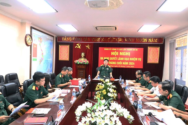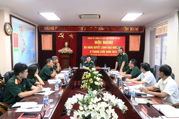 Tại thành phố Đà Nẵng, chiều ngày 15/7/2024, tại trụ sở Công ty Xây lắp Thành An 96, Đảng ủy Công ty đã tổ chức Hội nghị Đảng ủy ra Nghị quyết lãnh đạo nhiệm vụ 6 tháng cuối năm 2024; Chủ trì hội nghị Đảng ủy đồng chí Đại tá Phan Xuân Bằng - BTĐU Công ty. Dự và chỉ đạo hội nghị có đồng chí Đại tá Vũ Văn Điềm - Bí thư Đảng uỷ, Phó Tư lệnh Binh đoàn 11, cơ quan chức năng Binh đoàn cùng các đồng chí trong Đảng ủy, Ban Giám đốc Công ty.