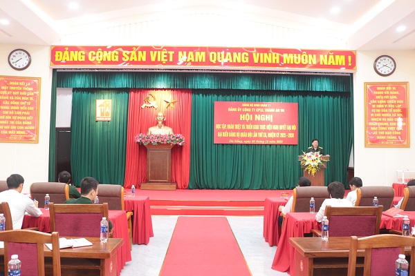 Đại tá Phan Xuân Bằng – Bí thư Đảng ủy Công ty phát biểu quán triệt Nghị quyết