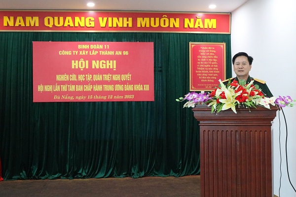 Sáng ngày 15/12/2023, tại thành phố Đà Nẵng, Đảng uỷ Công ty CPXL Thành An 96 tổ chức Hội nghị nghiên cứu, học tập, quán triệt Nghị quyết Hội nghị lần thứ Tám Ban Chấp hành Trung ương Đảng khoá XIII . Tham dự Hội nghị có các đồng chí trong Đảng uỷ, HĐQT, Ban Giám đốc Công ty, lãnh đạo, chỉ huy chủ trì các đơn vị trực thuộc, cán bộ, đảng viên và quần chúng tại khu vực TP.Đà Nẵng.