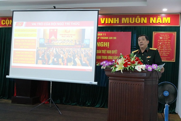 Tại Hội nghị, đồng chí Đại tá Phan Xuân Bằng - Bí thư Đảng uỷ đã phát biểu tuyên bố khai mạc lớp học; Tổ báo cáo viên đã lần lượt giới thiệu, quán triệt các Nghị quyết, gồm: Nghị quyết số 42-NQ/TW ngày 24/11/2023 về tiếp tục đổi mới, nâng cao chất lượng chính sách xã hội, đáp ứng yêu cầu sự nghiệp xây dựng và bảo vệ Tổ quốc trong giai đoạn mới; Nghị quyết số 43-NQ/TW ngày 24/11/2023 về tiếp tục phát huy truyền thống, sức mạnh đại đoàn kết toàn dân tộc, xây dựng đất nước ta ngày càng phồn vinh, hạnh phúc; Nghị quyết số 44-NQ/TW, ngày 24/11/2023 về “Chiến lược bảo vệ Tổ quốc trong tình hình mới”; Nghị quyết số 45-NQ/TW ngày 24/11/2023 về tiếp tục xây dựng và phát huy vai trò của đội ngũ trí thức đáp ứng yêu cầu phát triển đất nước nhanh và bền vững trong giai đoạn mới;