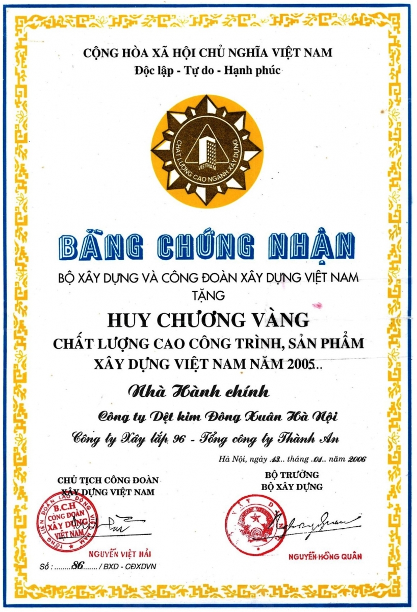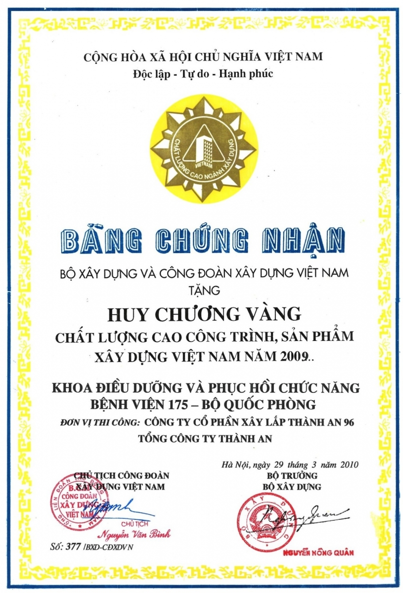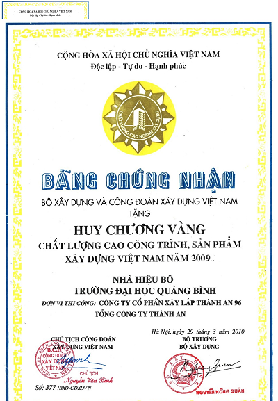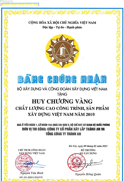 Huy chương vàng chất lượng công trình, sản phẩm xây dựng Việt Nam 2010 |
