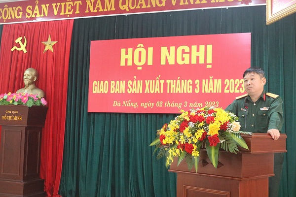 Đại tá Hoàng Đức Trúc - Giám đốc Công ty phát biểu chỉ đạo tại Hội nghị giao ban sản xuất tháng 3/2023