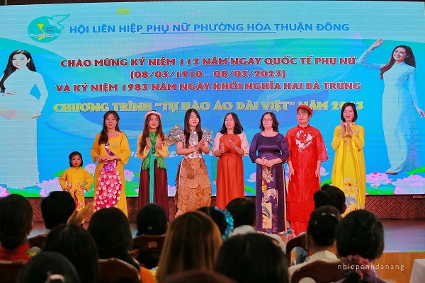 Thực hiện Kế hoạch tổ chức các hoạt động chào mừng kỷ niệm 113 năm Ngày Quốc tế Phụ nữ (8/3/1910 – 8/3/2023) và 1983 năm khởi nghĩa Hai Bà Trưng (40-2023) được chỉ huy Công ty phê duyệt, BCH Hội Phụ nữ triển khai chặt chẽ công tác tuyên truyền chủ trương chính sách của Đảng về công tác Phụ nữ, thống nhất nhận thức trong toàn hội; Hội Phụ nữ Cở sở Công ty tổ chức thăm tặng quà Mẹ VNAH Nguyễn Thị Yên - 92 tuổi tại phường Hoà Quý, Q.Ngũ Hành Sơn, TP.Đà Nẵng. Chiều ngày 05/3/2023, Hội Phụ nữ Cơ sở Công ty phối kết hợp với Hội Liên hiệp Phụ nữ phường Hoà Thuận Đông và các đơn vị bạn đã tổ chức chương trình “ Tự hào tà áo dài Việt Nam” năm 2023 bằng hình thức tự thiết kế áo dài bằng vật liệu tái chế. Thông qua chương trình nhằm tôn vinh, lan tỏa tình yêu áo dài, truyền tải thông điệp bảo vệ môi trường, đồng thời tăng cường mối quan hệ, giao lưu các tổ chức hội phụ nữ trên địa bàn đóng quân. Chung kết cuộc thi Hội Phụ nữ Cơ sở Công ty đoạt giải nhất - Khối cơ quan, trường học.