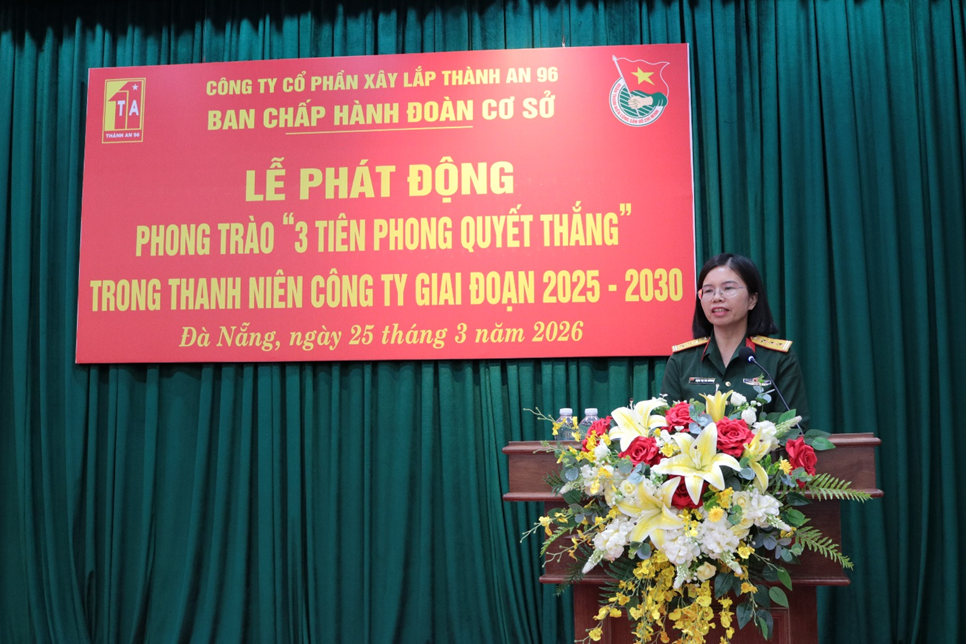 Tại Đà Nẵng, Đoàn cơ sở đã tổ chức Lễ phát động phong trào thi đua “3 Tiên phong, Quyết thắng” giai đoạn 2025 - 2030. Thượng tá CN Trịnh Thị Thu Hương - Phó Giám đốc Công ty thay mặt cho Thường vụ Đảng ủy, chỉ huy Công ty dự và phát biểu chỉ đạo. Tham dự còn có đại biểu là chỉ huy các phòng chức năng; đại diện cấp ủy, chỉ huy các đơn vị tại Đà Nẵng; đại diện các tổ chức quần chúng, cùng đông đủ cán bộ, đoàn viên Thanh niên. Buổi lễ khơi dậy khí thế quyết tâm thi đua của các chi đoàn, cỗ vũ cán bộ, đoàn viên sẵn sàng nhận và hoàn thành xuất sắc mọi nhiệm vụ.